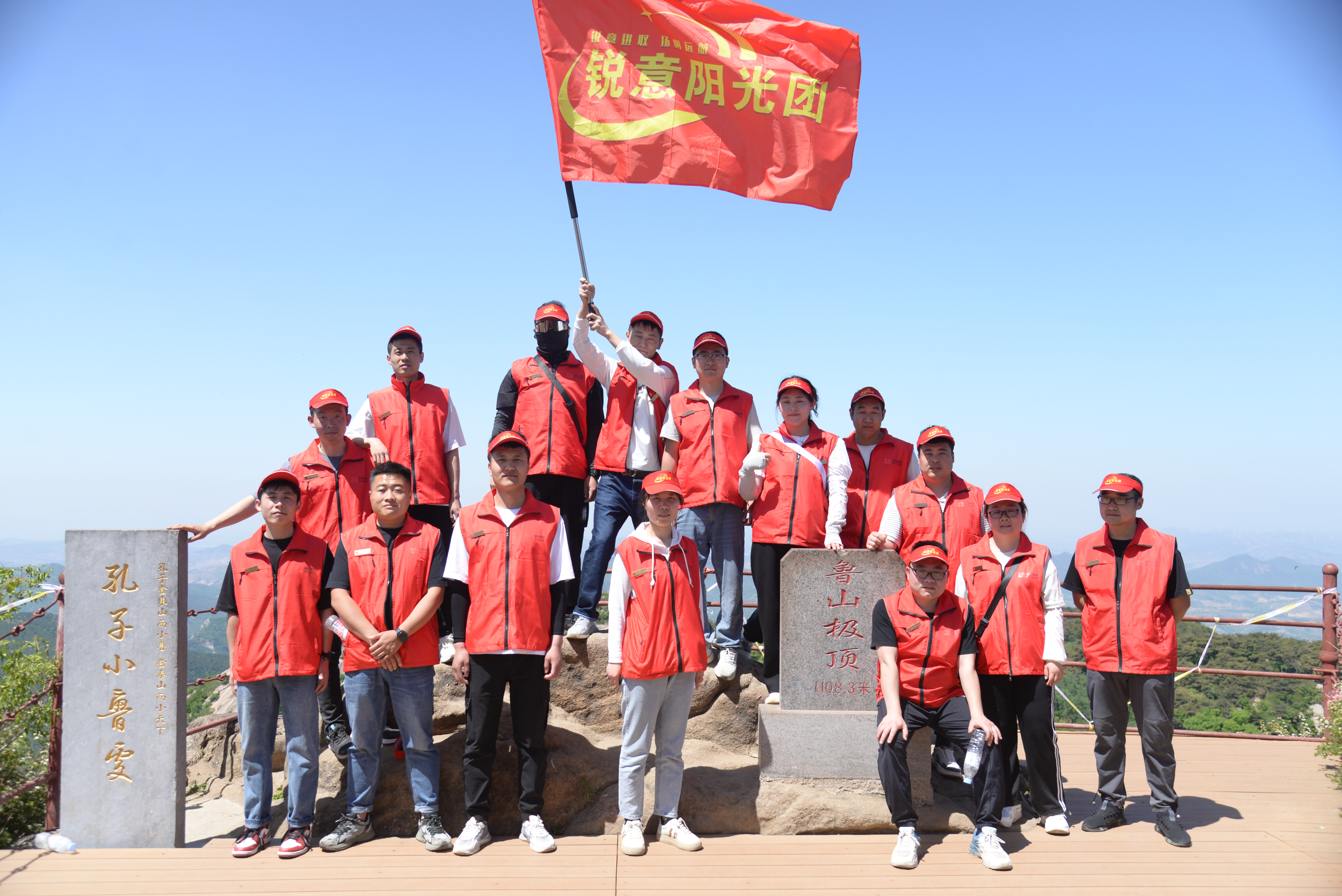 ? ? ??隊員們以小組為單位,在登山過程中精神飽滿、興致勃勃,欣賞著沿途山巒起伏的壯麗,拾階而上,結伴同行,在山林中穿行奮力向山頂攀登。大家一路結伴而行,交流感悟,互相鼓勵、攜手前進,在攀登的過程中盡享運動的魅力和樂趣,從山腳到山頂,不僅是體力的較量,更是對毅力的考驗,憑借頑強的意志和健康的體質,隊員們充分發揚了頑強拼搏、團結協作精神,在登上山頂后,大家在頂峰合影留念。
